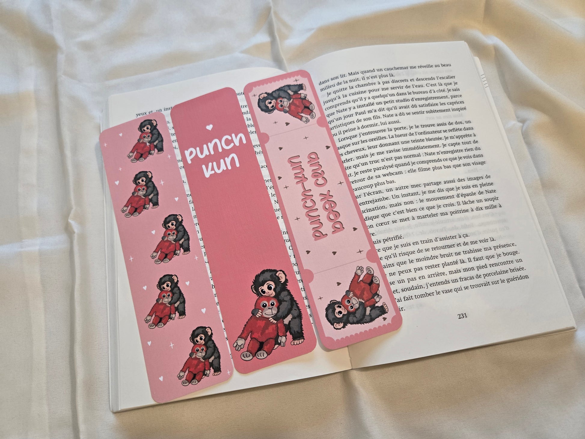 Fall in love with this set of 3 unique bookmarks featuring Punch-Kun and his adoptive orangutan mother. A touch of emotion and tenderness to slip between the pages of your favorite books!